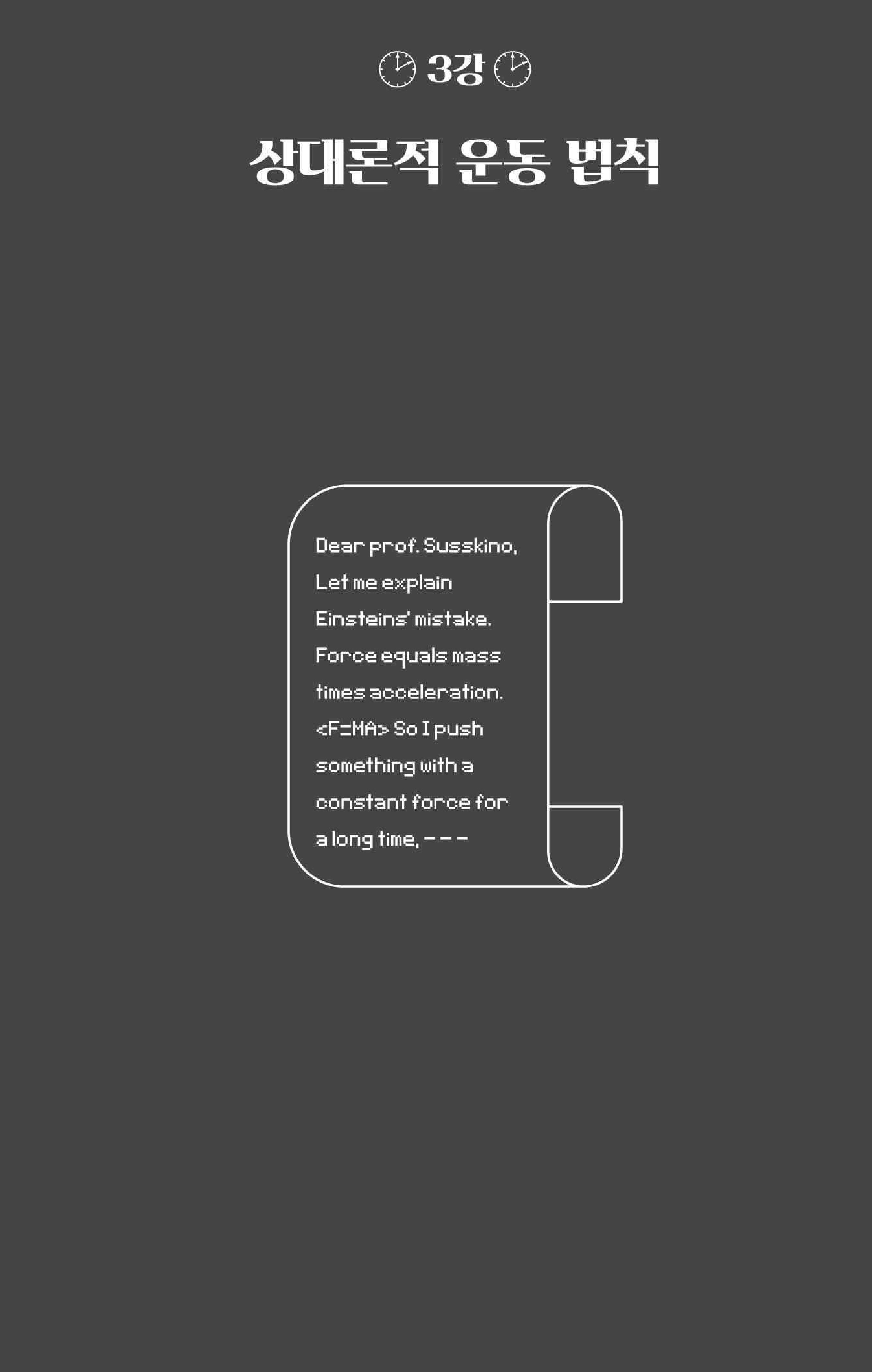 『물리의 정석: 특수 상대성 이론과 고전 장론 편』이 출간되었습니다. 고전 물리학의 가장 위대한 업적인 특수 상대성 이론과 뉴턴, 맥스웰 이론의 기초인 고전 장론을 연결하는 레너드 서스킨드의 강의를 엮은 이 책은, 두 가지 이론을 통합하며 가르치는 만큼 이해하기가 더 어려울지도 모릅니다. 하지만 걱정하지 않아도 됩니다. 실제로 서스킨드의 강좌 수강생이었던 공저자 아트 프리드먼이 '초심자'의 입장에서 책 곳곳에 문제풀이 능력을 스스로 기를 수 있는 연습 문제들을 배치해 놓았으니까요. 연습 문제를 우여곡절 끝에 풀긴 풀었는데 이게 정답인지 확신이 가지 않는 분들을 위해, 그리고 어떻게 풀어야 할지 실마리가 보이지 않는 분들을 위해 (주)사이언스북스 블로그에서 『물리의 정석 솔루션: 특수 상대성 이론과 고정 장론 편』을 준비했습니다. 모두 8회에 걸쳐 이루어질 이번 연재를 통해 『물리의 정석: 특수 상대성 이론과 고전 장론 편』을 내 것으로 만들어 보세요.