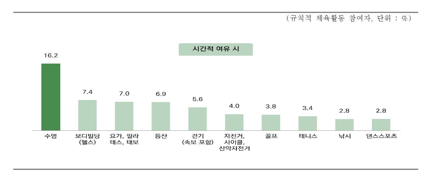 대한민국 국민이 꼭 해 보고 싶은 운동 1위는? 수영, 그리고 …… 본문